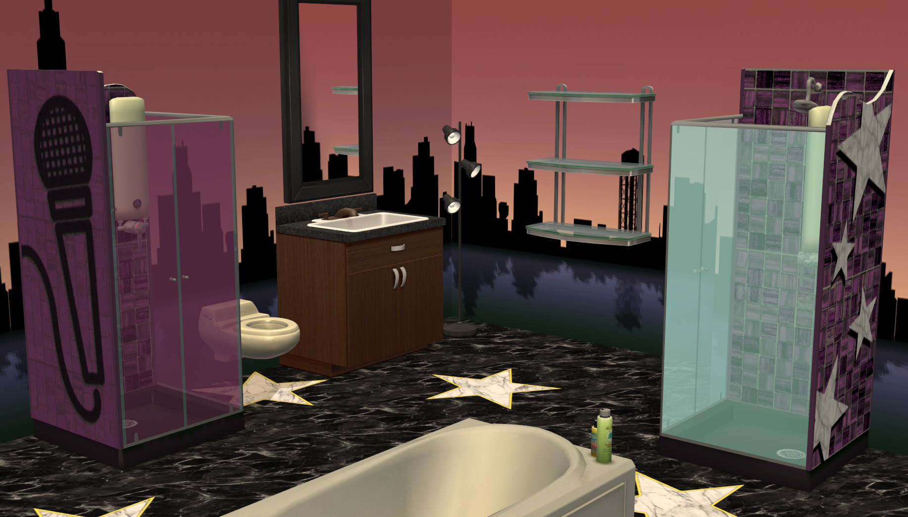 Allows Sims to build Creativity while gaining Fun, Hygiene along with Music & Dance Enthusiasm – but there are some amusing consequences when a Sim with low Creativity uses it.