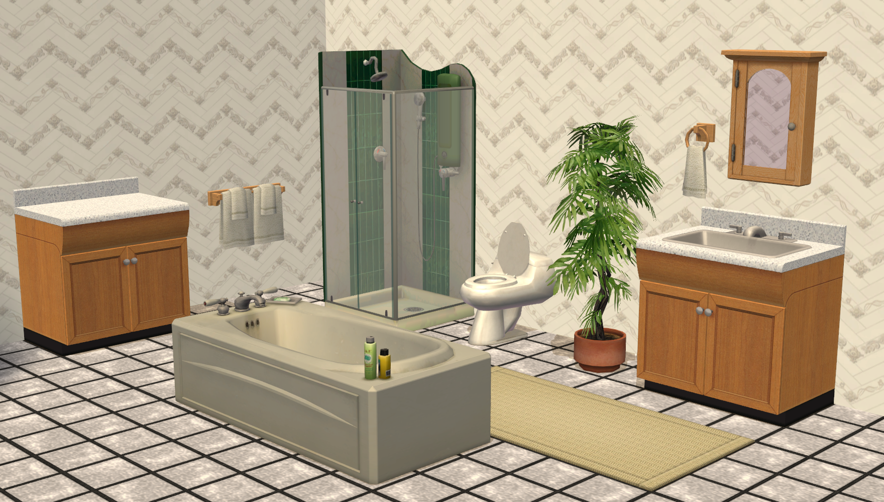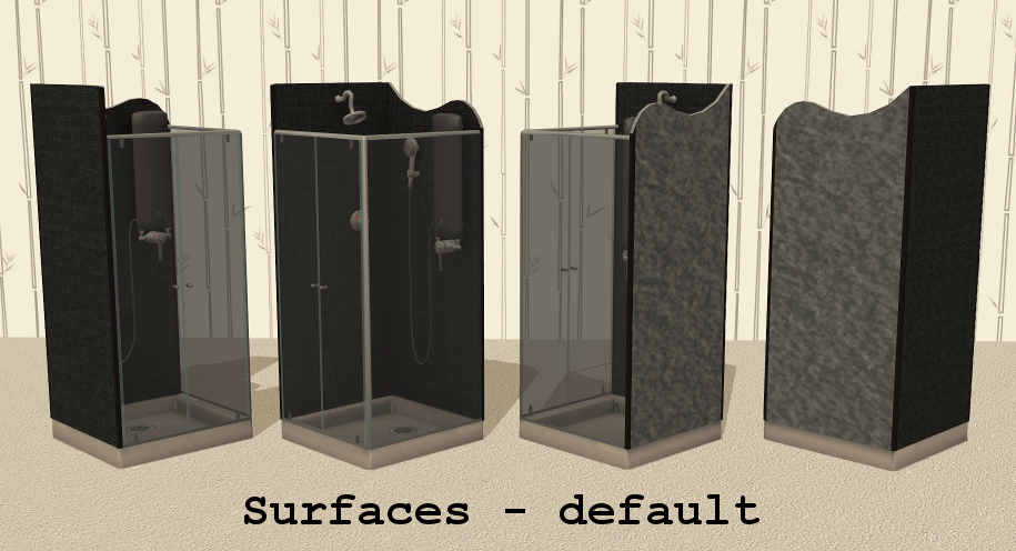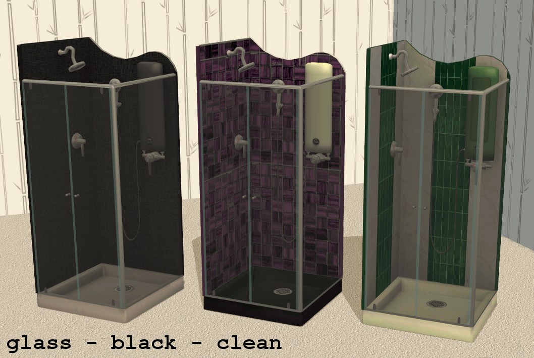 A brand-new Maxis-match shower object with two recolourable subsets (surfaces, glass) with corresponding dirty states.